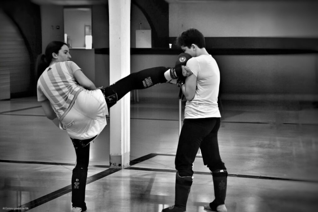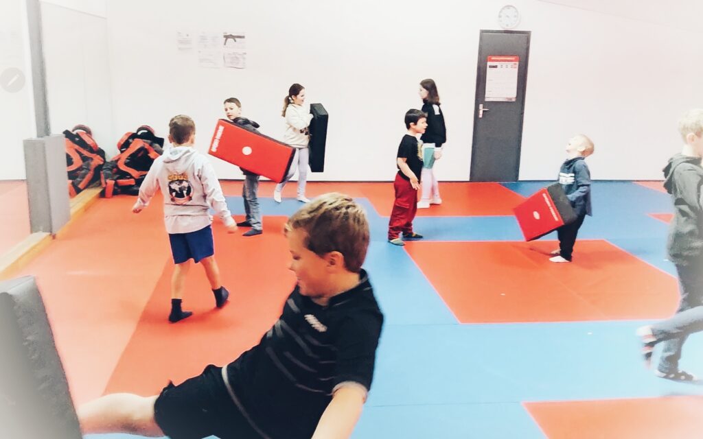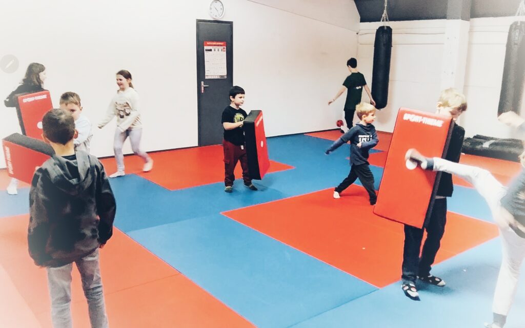 La section Kids apprend à nos enfants à être coordonnés, habiles. L’équilibre, et la gestion des émotions font parti également des apprentissages dispensés tout au long de l’année. Les techniques de base en pieds-poings sont présentées, mais les frappes se font uniquement sur les sacs ou boucliers prévus; pas de coups portés entre enfant.