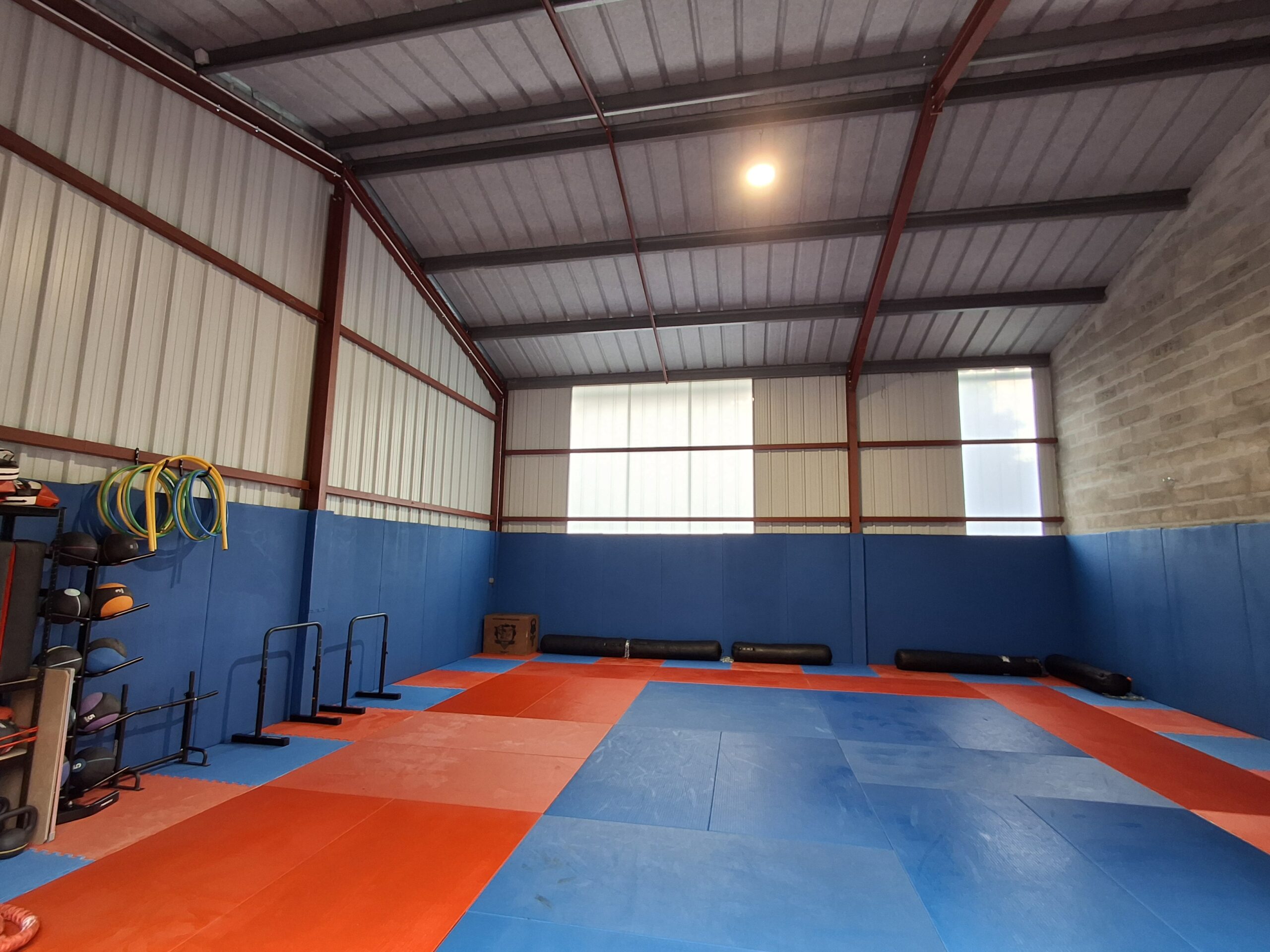 Nous disposons d’une salle privatisée, équipée avec du matériel adapté à notre pratique sportive.